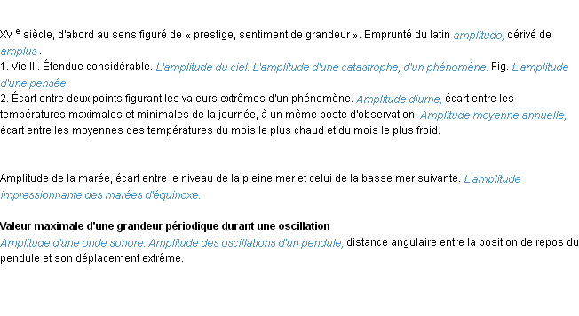 Ancienne signification issue du dico de l’Académie Française, parue en 1798.Merci à Gérald et Pénélope pour la numérisation du mot amplitude.