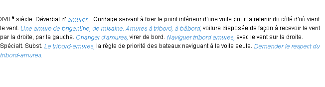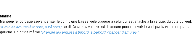Signification éditée en 1986 pour le terme « amure » par l’Académie Française.