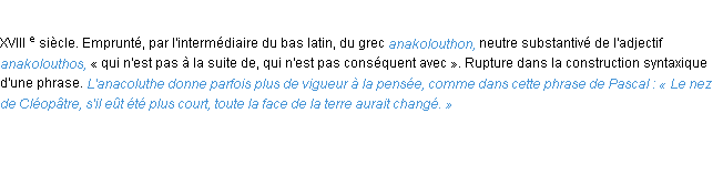 Ancienne signification parue en 1835 dans dictionnaire de l’Académie Française.Merci à Félix et Solange pour la numérisation du mot anacoluthe.