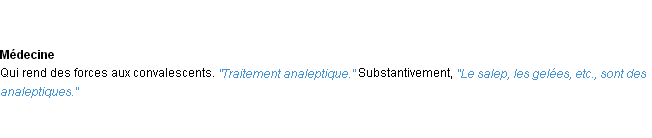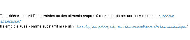 Ancienne signification développée en 1798 par l’académie Française (ACAD - 1798).Merci à émilien et étienne pour la numérisation du mot analeptique.