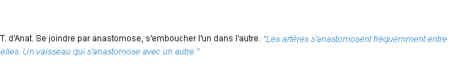 Ancienne signification développée en 1798 par l’académie Française (ACAD - 1798).Merci à Sylvestre et Charlot pour la numérisation du mot anastomoser.