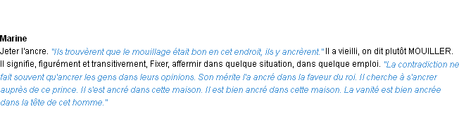 Signification du terme « ancrer », parution de 1932, dictionnaire académique Français.