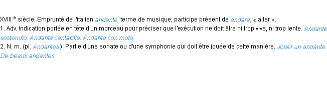 Signification du terme « andante », parution de 1986, dictionnaire académique Français.