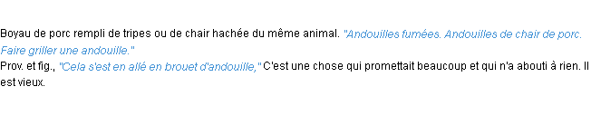 Ancienne signification éditée en 1835 pour le terme « andouille » par l’Académie Française.