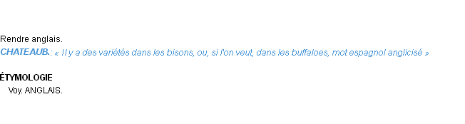 Définition de « angliciser » de source académique (Académie Française, parution de 1932).