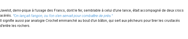 Ancienne définition du mot « angon » par l’Académie Française (édition de 1798).Merci à élise et Adèle pour la numérisation du mot angon.