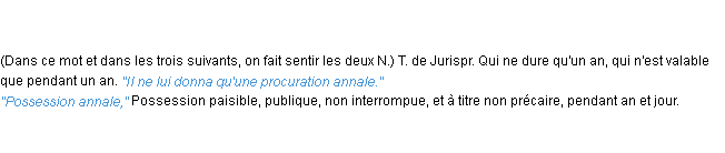 Définition du mot « annal » par l’Académie Française (édition de 1932).