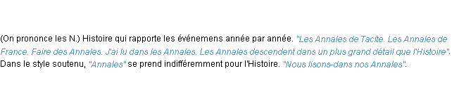 Signification éditée en 2010 par l’équipe de la-definition.fr.Merci à Léon et Germaine pour la numérisation du mot annales.
