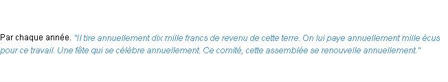 Ancienne signification éditée en 1835 pour le terme « annuellement » par l’Académie Française.