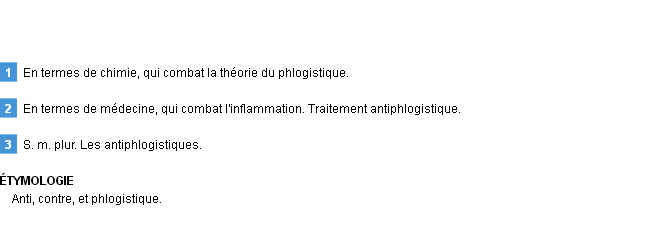 Définition de « antiphlogistique » de source académique (Académie Française, parution de 1932).