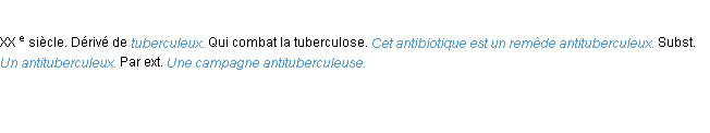 Signification parue en 1932 dans dictionnaire de l’Académie Française.Merci à éloise et Margot pour la numérisation du mot antituberculeux.