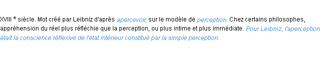 Signification éditée en 1986 pour le terme « aperception » par l’Académie Française.