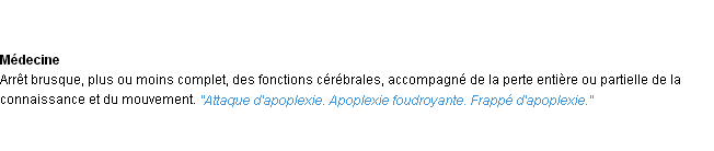 Définition « apoplexie » du dictionnaire académique Français, parution de l’année 1986.