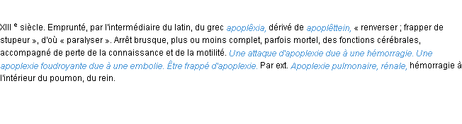 Définition du mot « apoplexie » par l’Académie Française (édition de 1932).
