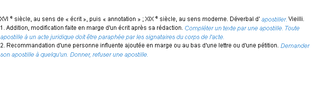 Définition du mot « apostille » par l’Académie Française (édition de 1932).