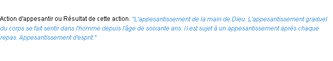 Signification du terme « appesantissement », parution de 1986, dictionnaire académique Français.