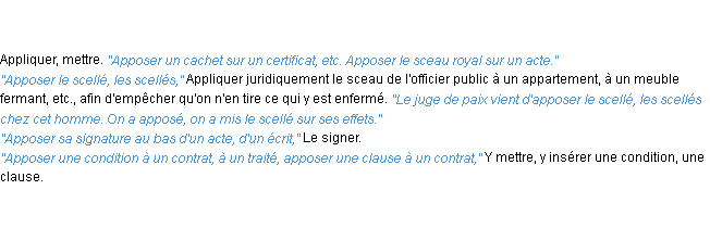 Signification du terme « apposer », parution de 1932, dictionnaire académique Français.