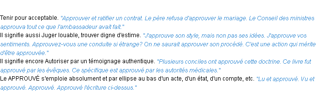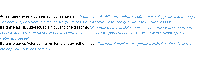 Ancienne définition de l’Académie Française (édition de 1835) pour le mot « approuver ».