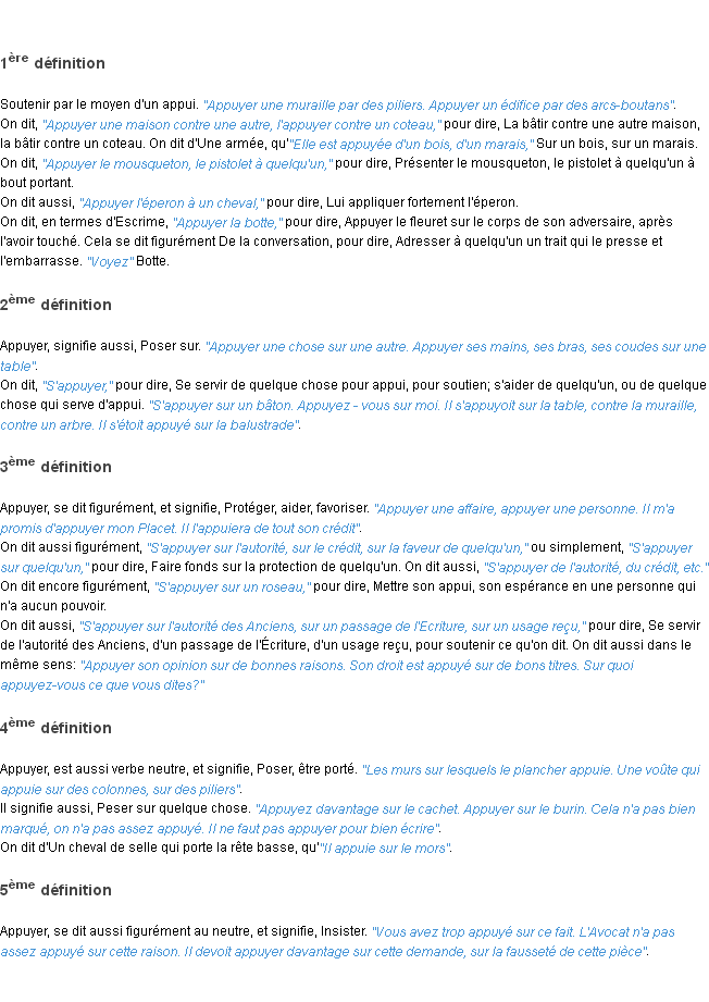 Signification éditée en 1986 pour le terme « appuyer » par l’Académie Française.
