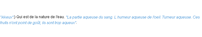 Ancienne signification du terme « aqueux », parution de 1835, dictionnaire académique Français.