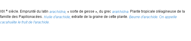 Définition « arachide » du dictionnaire académique Français, parution de l’année 1932.