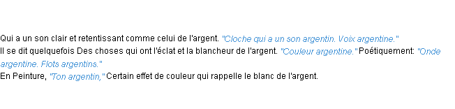 Ancienne définition académique pour le terme « argentin » (parue en 1798).