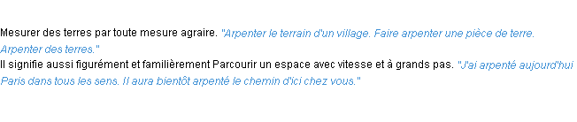 Définition « arpenter » du dictionnaire académique Français, parution de l’année 1986.