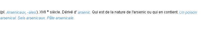 Ancienne définition « arsenical » du dictionnaire académique Français, parution de l’année 1835.