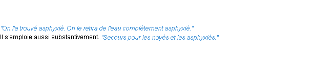 Définition académique pour le terme « asphyxie » (parue en 1986).