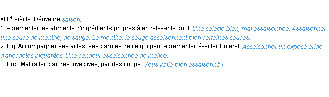 Signification éditée en 1986 pour le terme « assaisonner » par l’Académie Française.