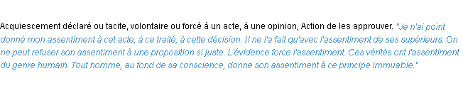 Ancienne définition académique pour le terme « assentiment » (parue en 1835).