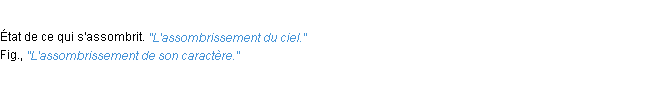Définition développée dans dictionnaire académique, 1932.Merci à édouard et Sylvie pour la numérisation du mot assombrissement.