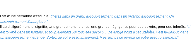 Signification du terme « assoupissement », parution de 1932, dictionnaire académique Français.