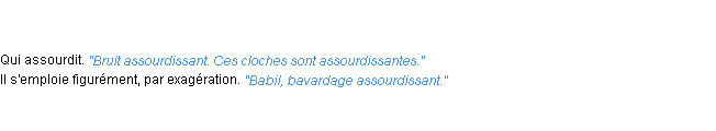 Définition académique pour le terme « assourdissant » (parue en 1932).