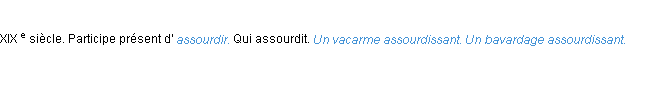 Définition du mot « assourdissant » (source wiktionary 2011).Merci à Armand et Iréné pour la numérisation du mot assourdissant.
