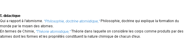 Signification du terme « atomistique », parution de 1876 (dictionnaire le Littré).Merci à Colombe et Mariette pour la numérisation du mot atomistique.
