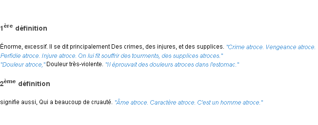 Définition « atroce » du dictionnaire académique Français, parution de l’année 1932.