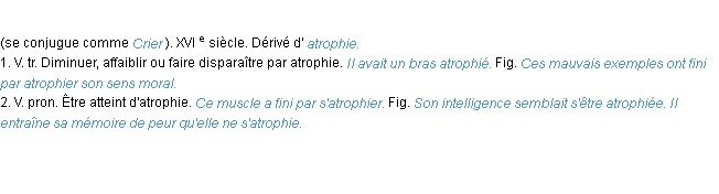 Définition développée dans dictionnaire d’Emile Littré (ancienne édition de 1876).Merci à Armand et Gustave pour la numérisation du mot atrophier.