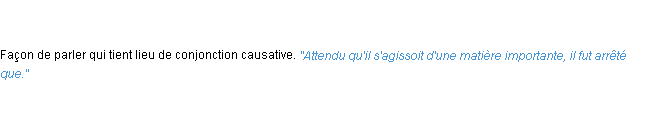 Ancienne signification du terme « attendu que », parution de 17962, dictionnaire académique Français.Merci à Sylvain et Lydie pour la numérisation du mot attendu que.