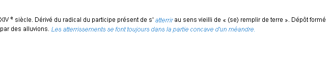 Signification éditée en 1932 pour le terme « atterrissement » par l’Académie Française.