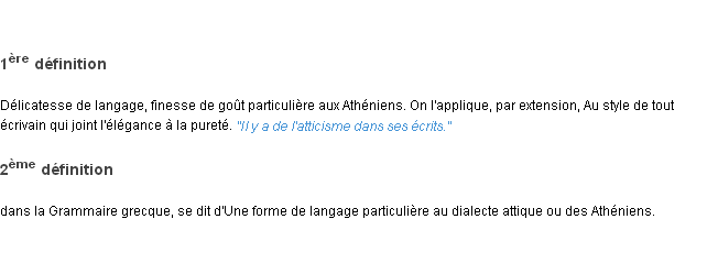 Définition du mot « atticisme » par l’Académie Française (édition de 1932).