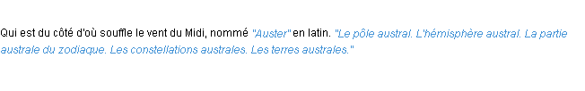 Ancienne définition « austral » du dictionnaire académique Français, parution de l’année 1835.