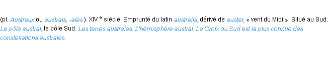 Définition « austral » du dictionnaire académique Français, parution de l’année 1932.