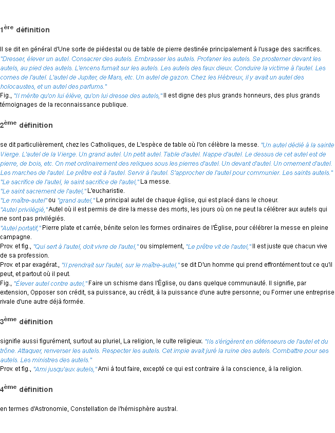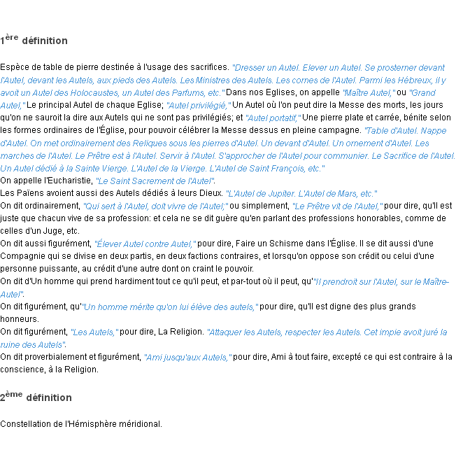 Définition du mot « autel » par l’Académie Française (édition de 1932).