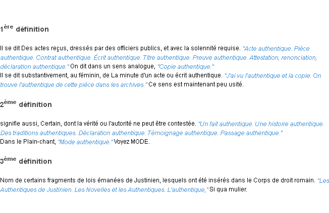 Définition du mot « authentique » par l’Académie Française (édition de 1932).