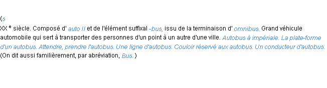 Définition du mot « autobus » par l’Académie Française (édition de 1986).