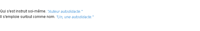 Définition d’Emile Littré (édition de 1876) pour le mot « autodidacte ».Merci à Fabrice et Nicolette pour la numérisation du mot autodidacte.