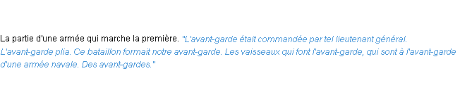 Définition « avant-garde » du dictionnaire académique Français, parution de l’année 1932.