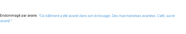 Ancienne définition du mot « avarie » par l’Académie Française (édition de 1798).Merci à Célestine et édouard pour la numérisation du mot avarie.