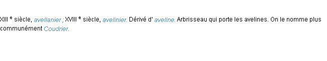 Signification éditée en 1932 pour le terme « avelinier » par l’Académie Française.